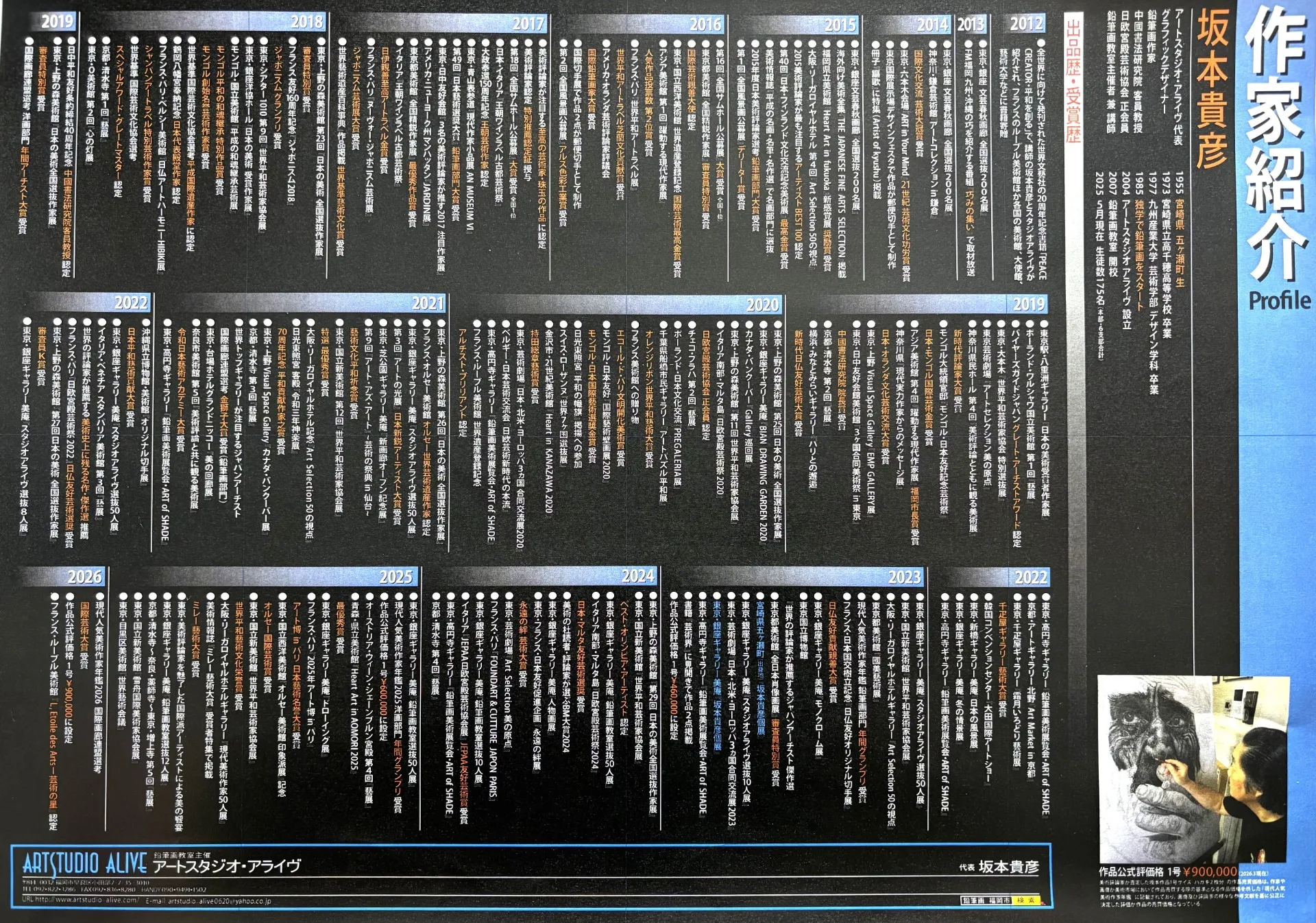 講師実績 9月9日。先日の私の作品査定額が1号¥900,000に跳ね上がってしまったことを考え、ふと…ふと、これまでの実績が改めて気になりだし、過去の実績をまとめた一覧表を作成してみた。(画像)これは、また近い…